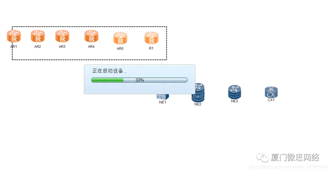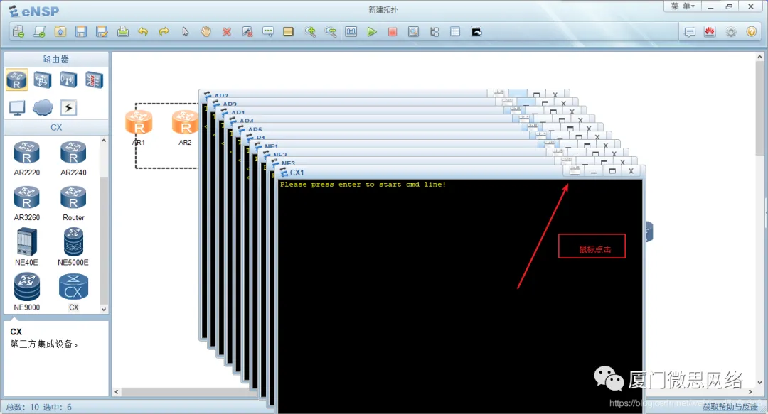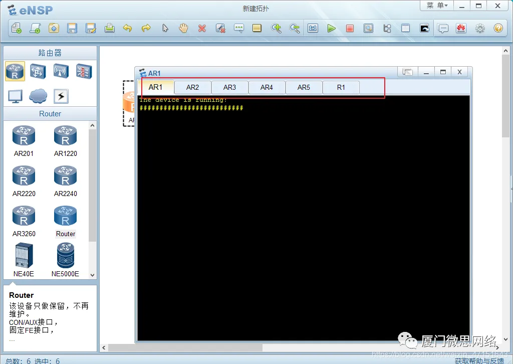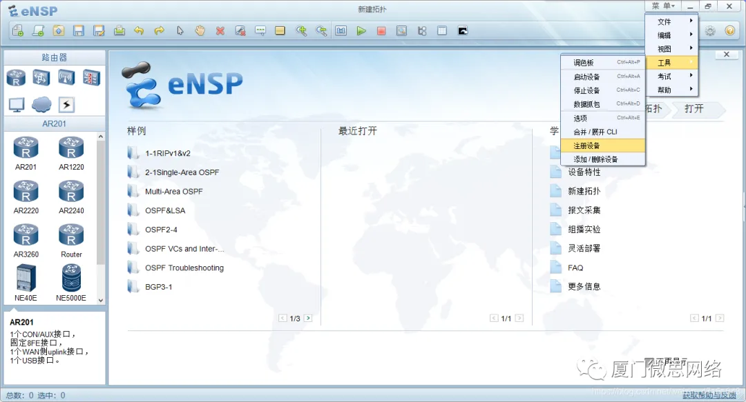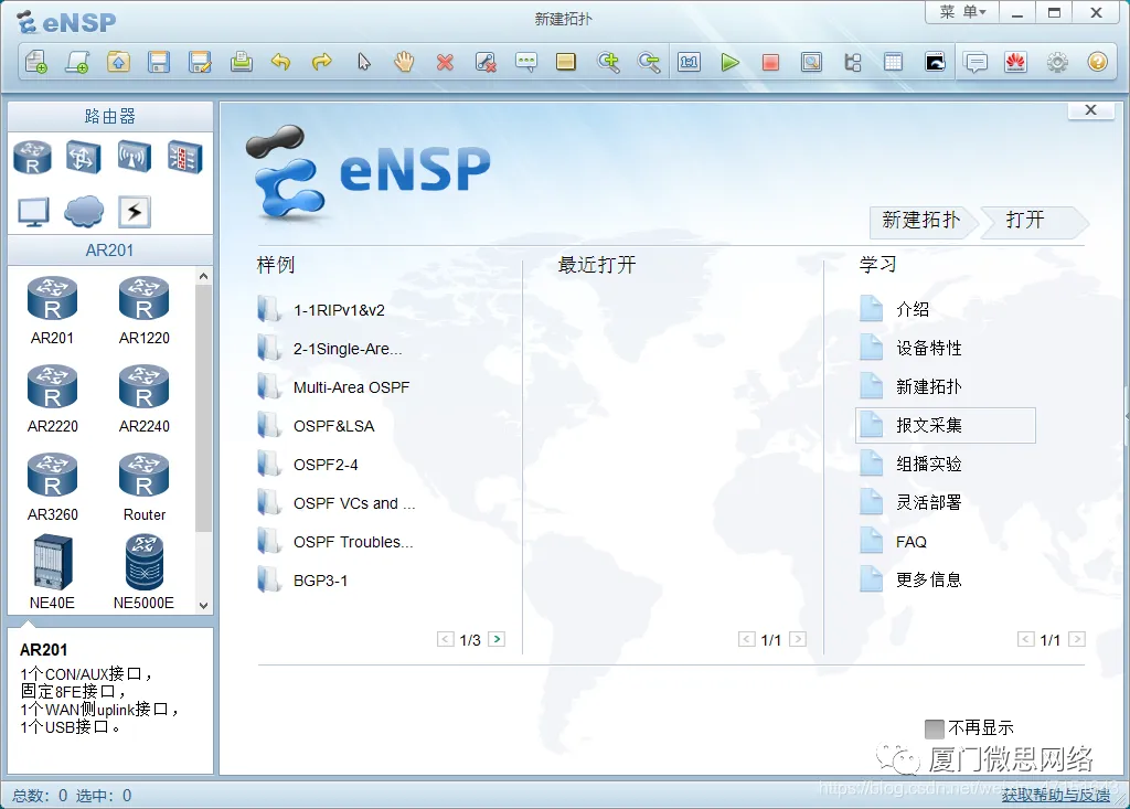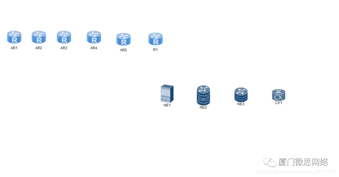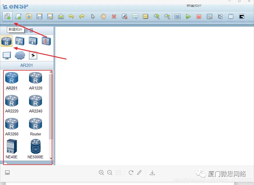 1.点击新建拓扑,点击R1 然后把下面的路由器挨个拖出来