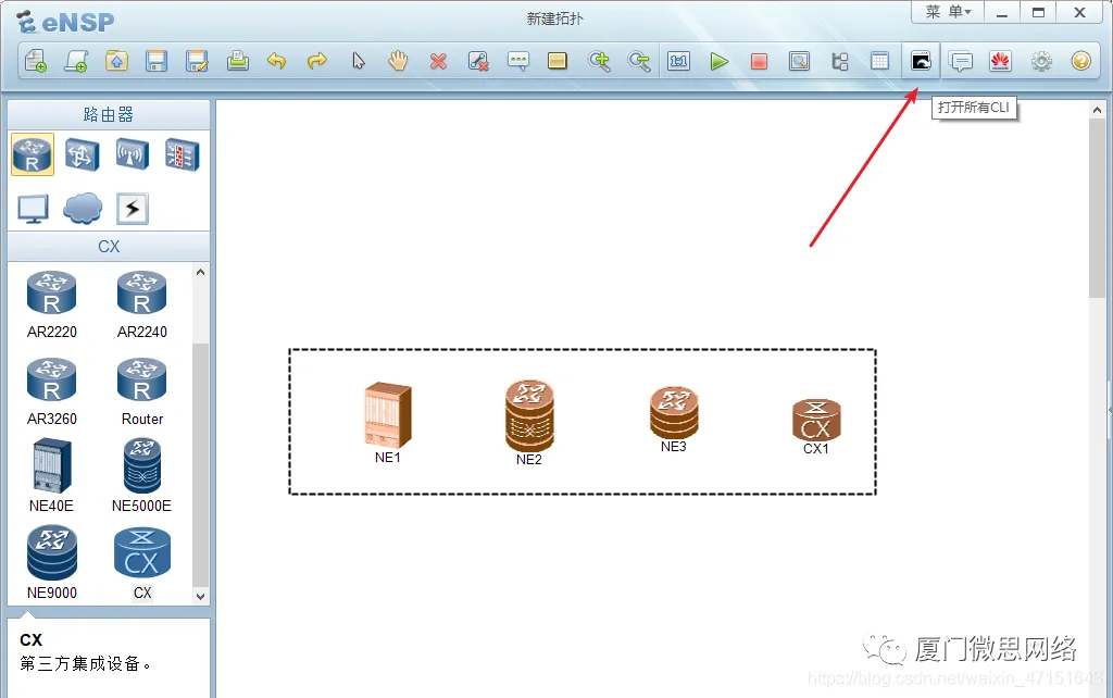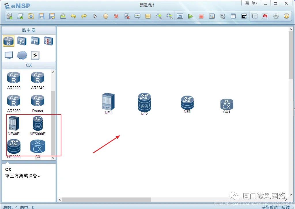 我们回到ENSP,我们把这几个拖到右边