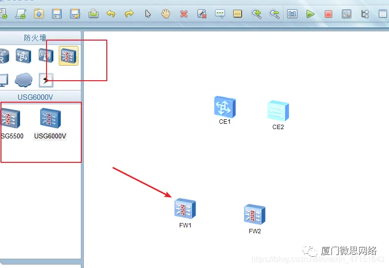 下一步打开防火墙,把USG5500跟USG6000v拖过来