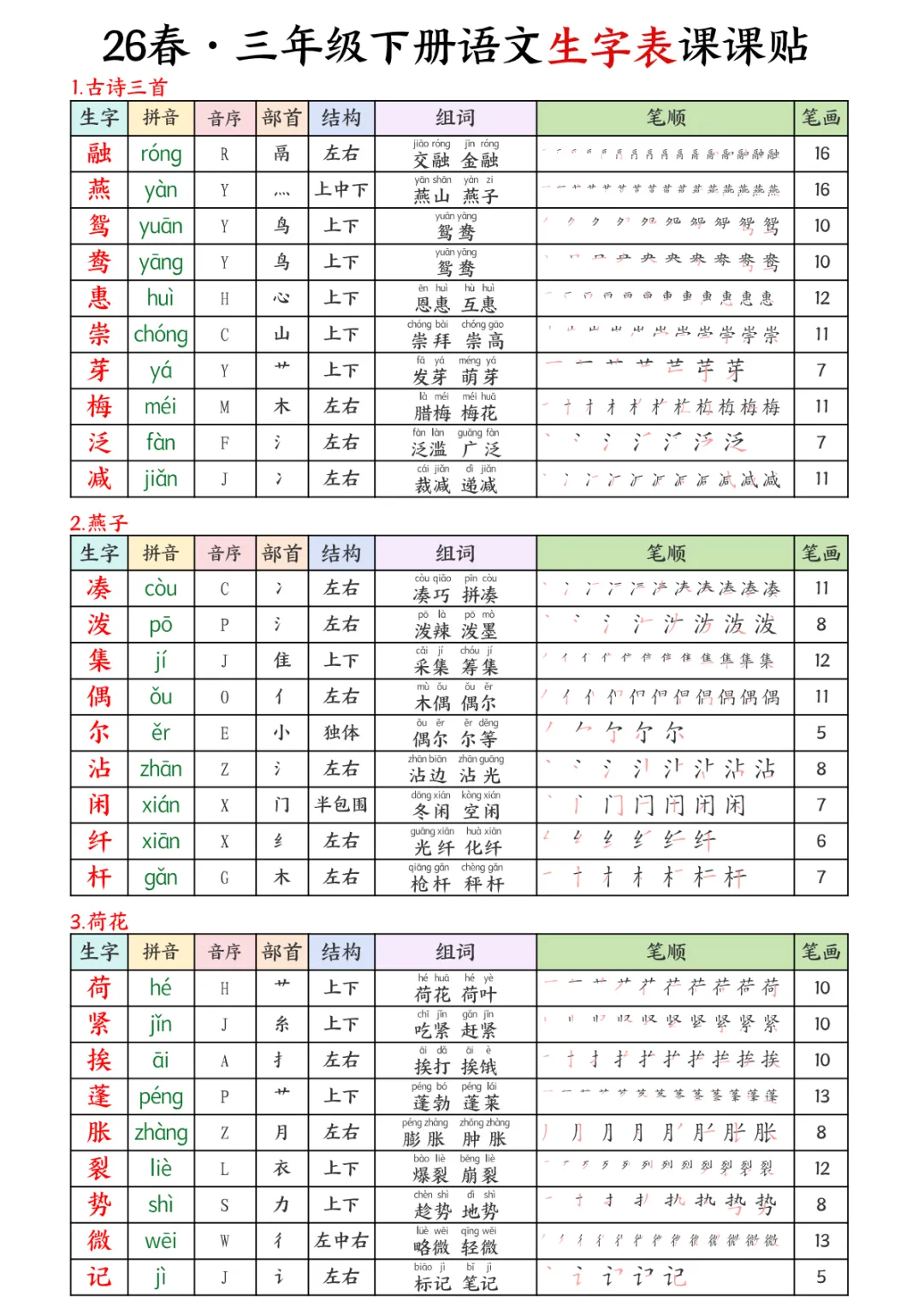 三年级(下)语文 生字课课贴