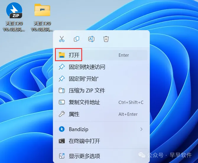 17、回到桌面,右键桌面上的【T20天正建筑V6.0软件图标】,点击【打开】