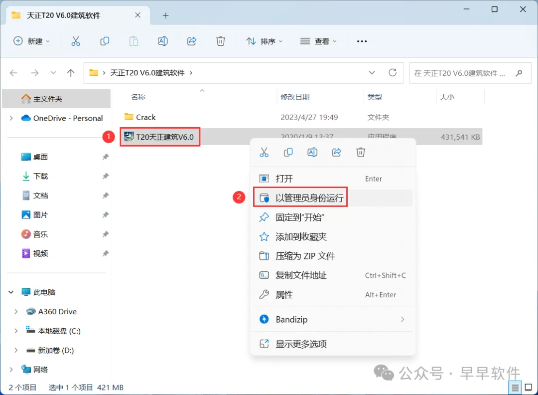 3、找到【T20天正建筑V6.0】应用程序,右键选择【以管理员身份运行】它
