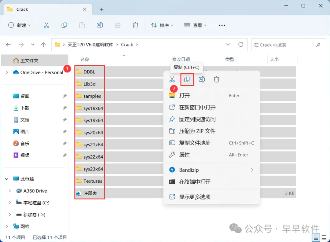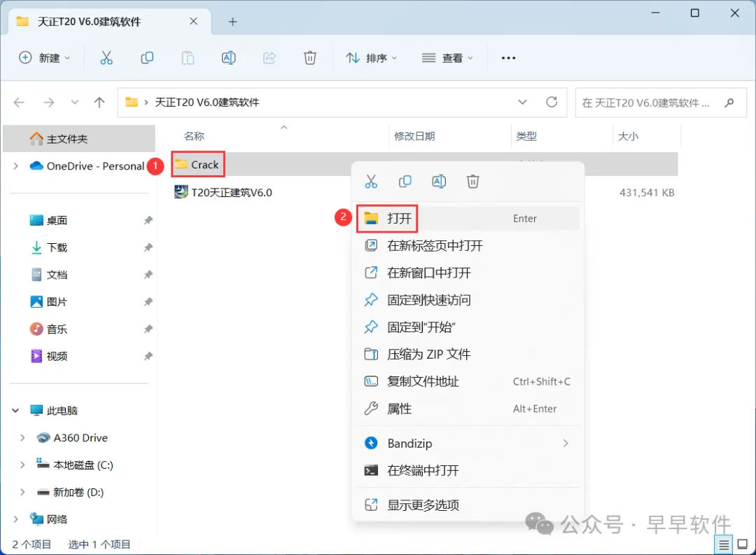 9、回到天正T20 V6.0建筑软件文件夹,找到【Crack】文件夹,右键【打开】它