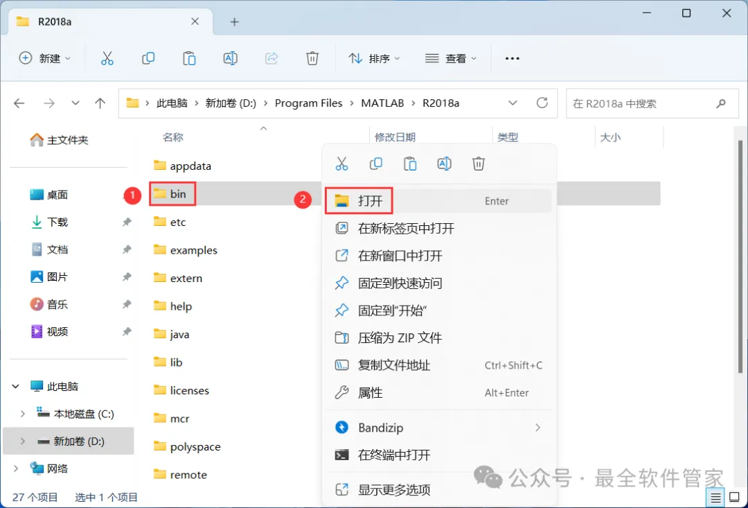 17、找到【bin】文件夹,右键【打开】它