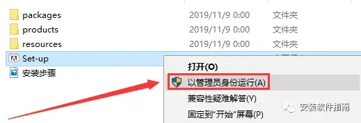 2.打开解压后的文件夹,右键点击,以管理员身份运行set-up