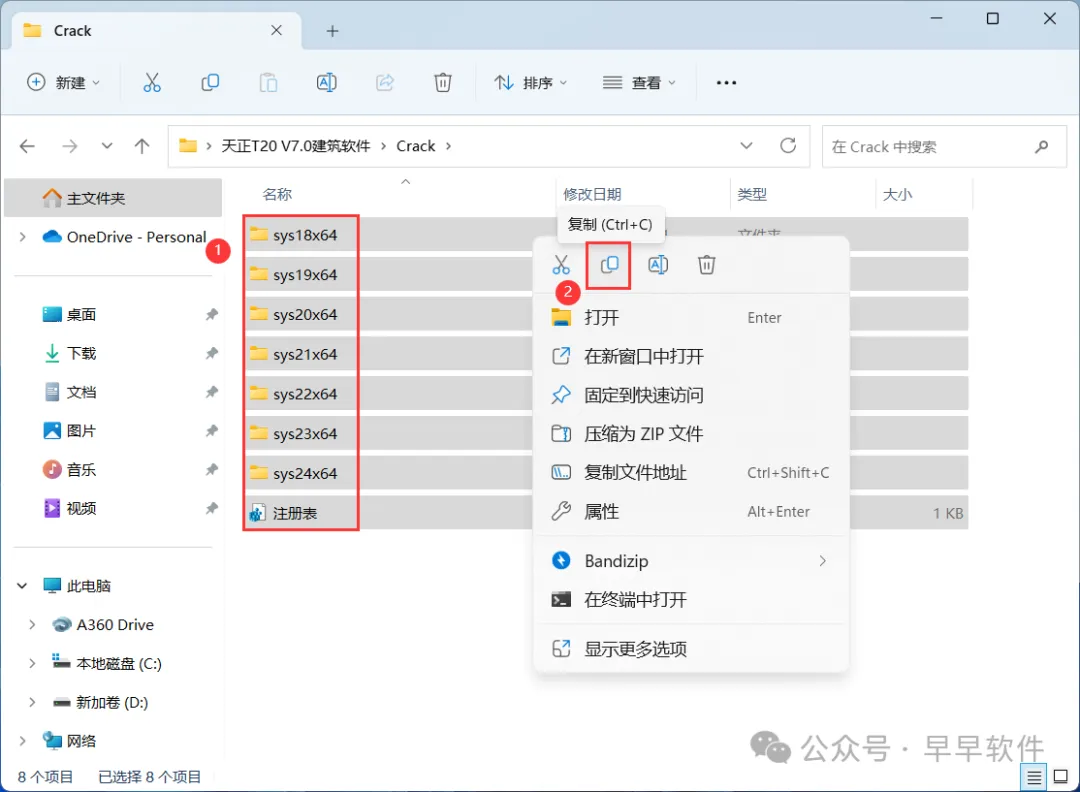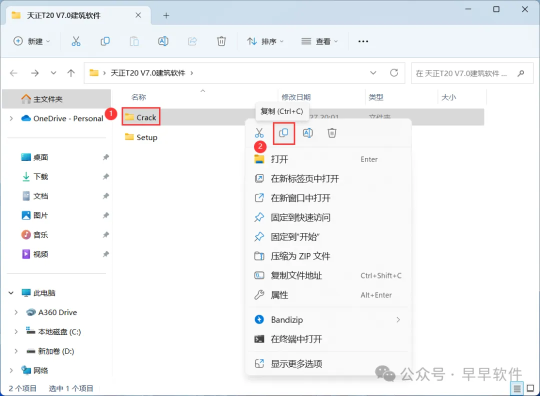 10、回到天正T20 V7.0建筑软件文件夹,找到【Crack】文件夹,右键【打开】它