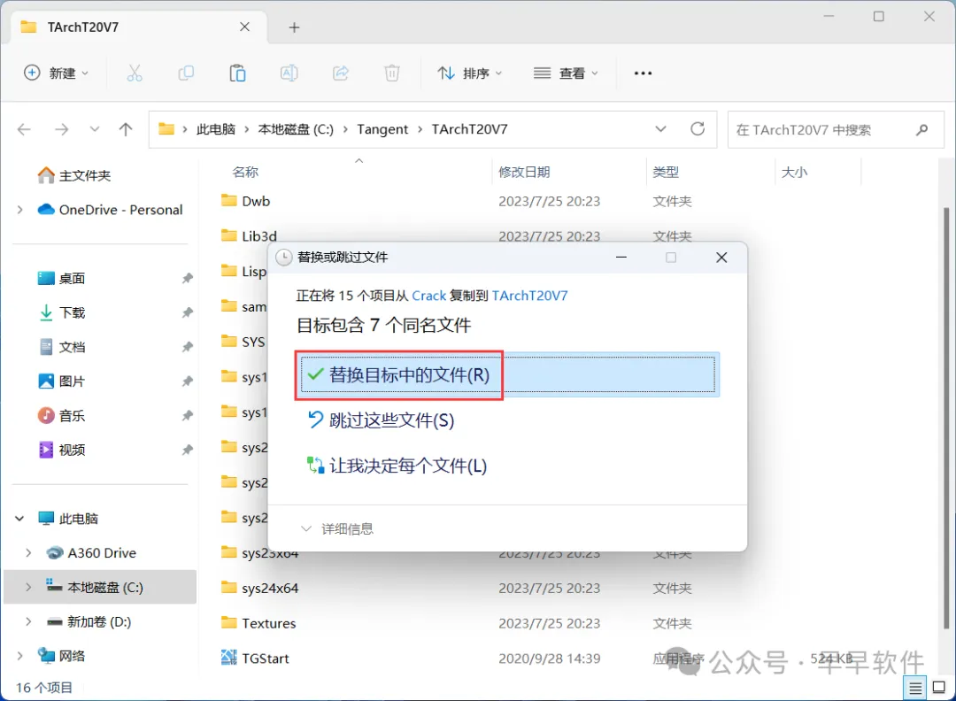14、点击【替换目标中的文件】