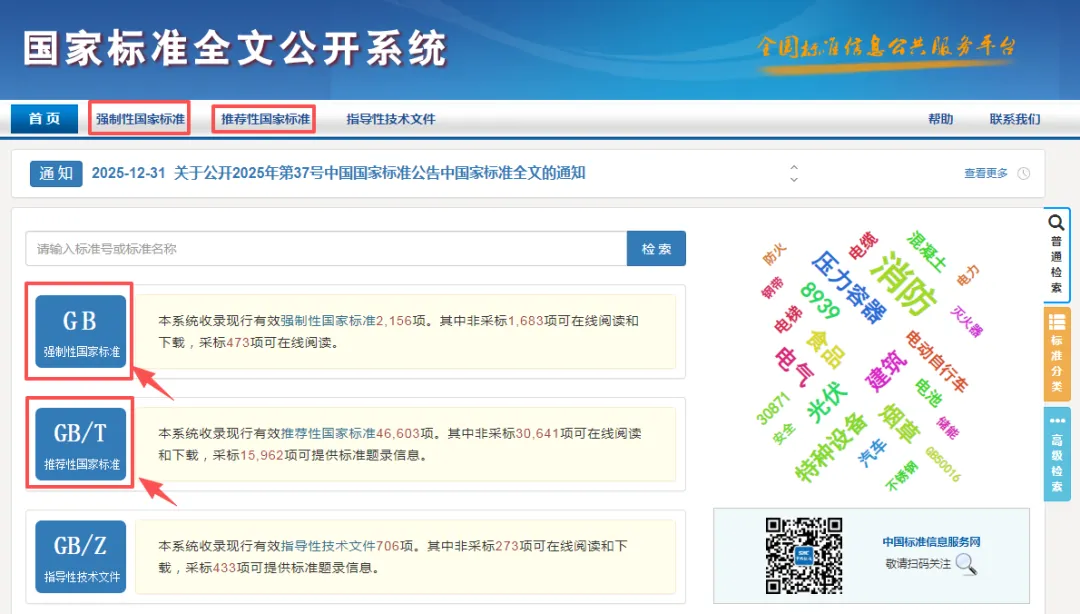 其中安全生产、危险化学品安全、电动自行车安全等方面标准(网址:https://openstd.samr.gov.cn/bzgk/gb/index)1.以“GB 12801-2025 生产过程安全基本要求”为例,在首页检索框内输入要查询的标准号或标准名称,点击“检索”按钮进行详细检索。