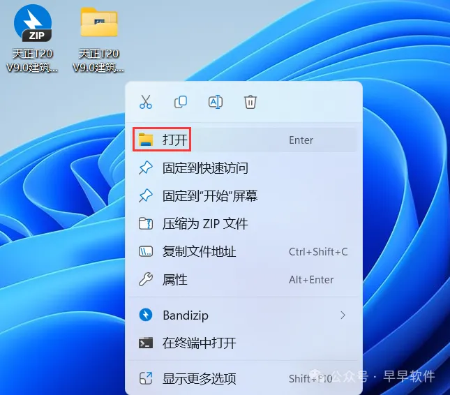 15、回到桌面,右键桌面上的【T20天正建筑V9.0软件图标】,点击【打开】