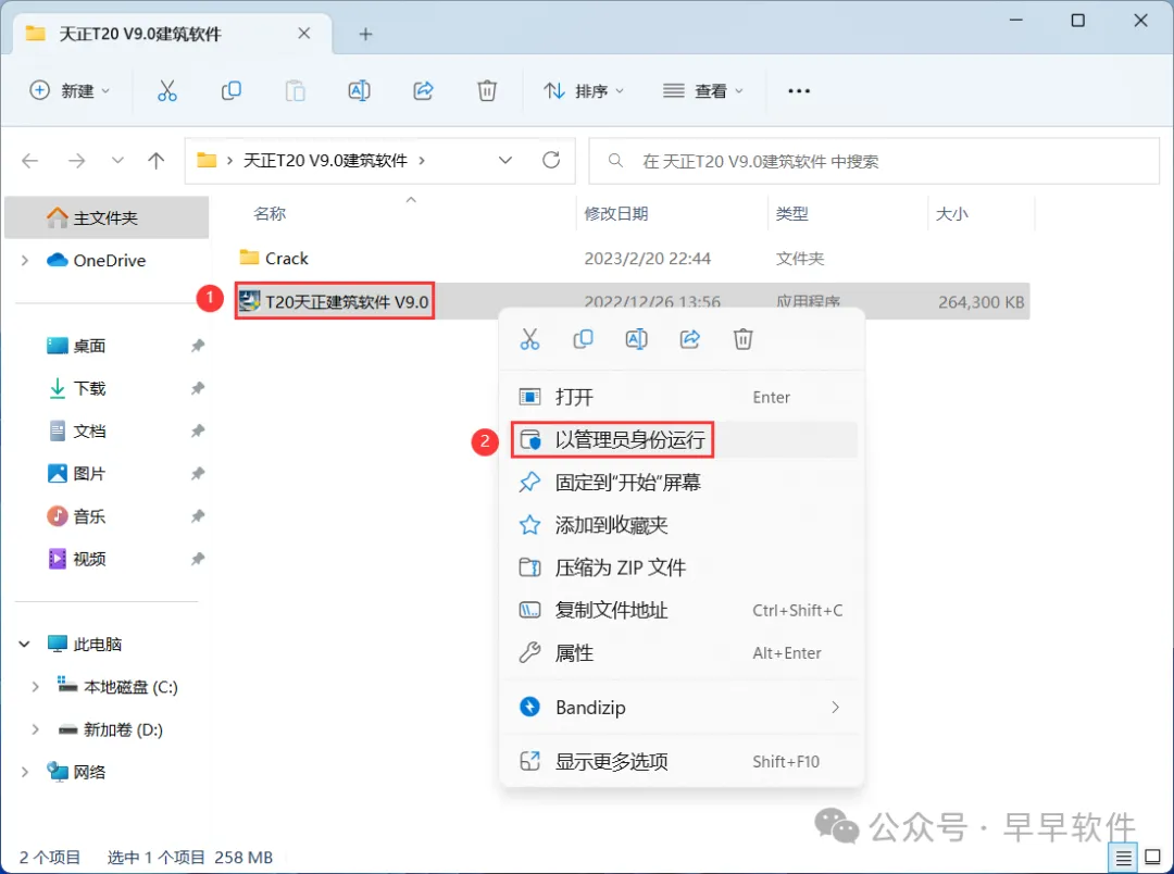 1、下载天正T20 V9.0建筑软件安装包到电脑上,右键选择【解压到天正T20 V9.0建筑软件\】