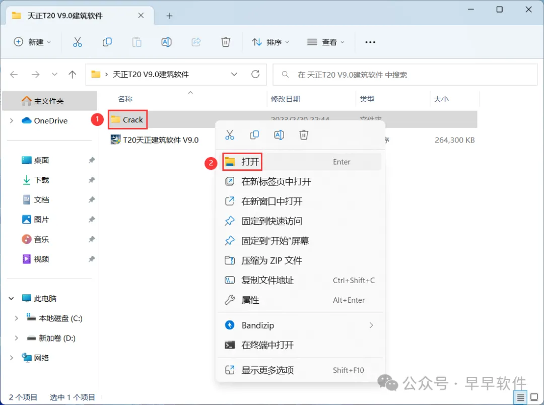 10、回到天正T20 V9.0建筑软件文件夹,找到【Crack】文件夹,右键【打开】它