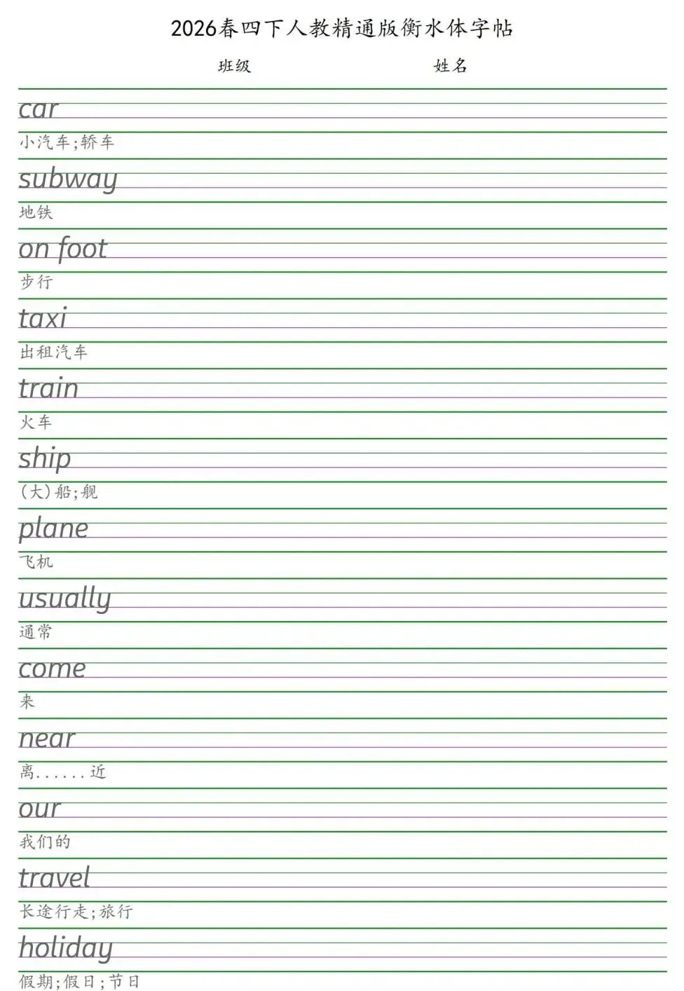✅「26春人教精通版英语字帖」
