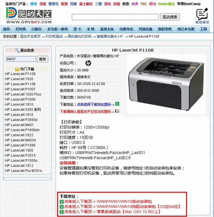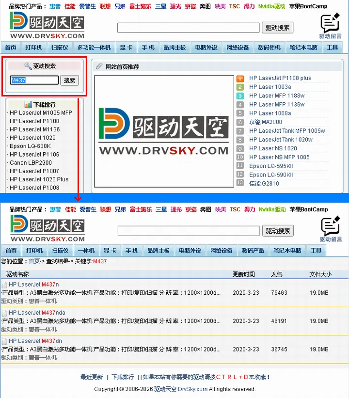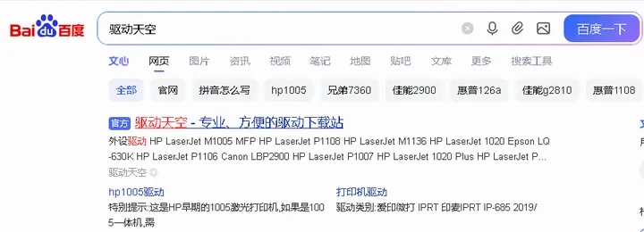 驱动天空是目前国内为数不多的免费驱动下载网站,其主页界面简洁流畅、无广告。而且其打印机驱动库相当全面,可以说在该网站中基本没有找不到的打印机驱动。