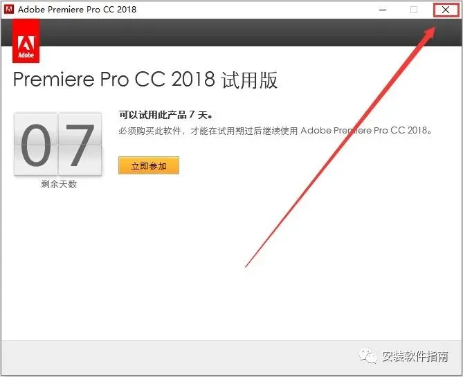 5.出现此款软件为试用7天,点击右上角的关闭按钮即可
