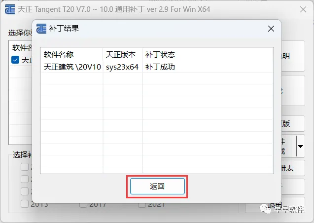 11、补丁制作成功,点击【返回】