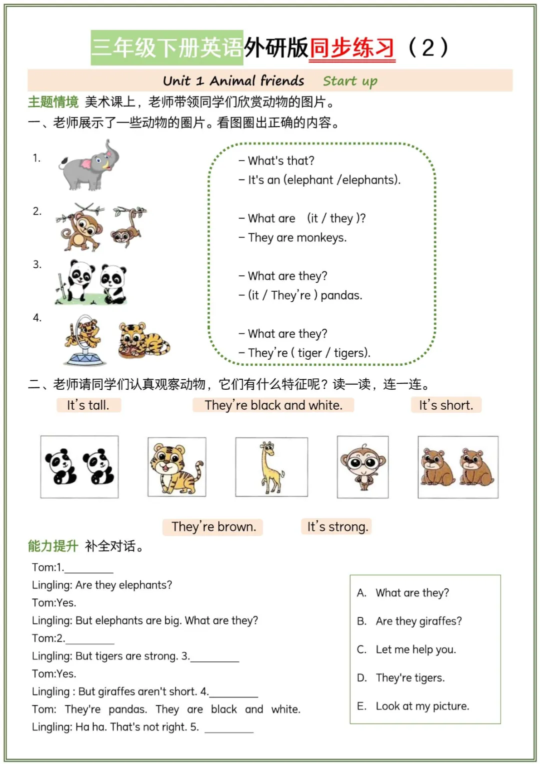 【免费下载】三年级(下)英语 同步练习《外研版(三起)》,PDF电子版,共36页,可打印