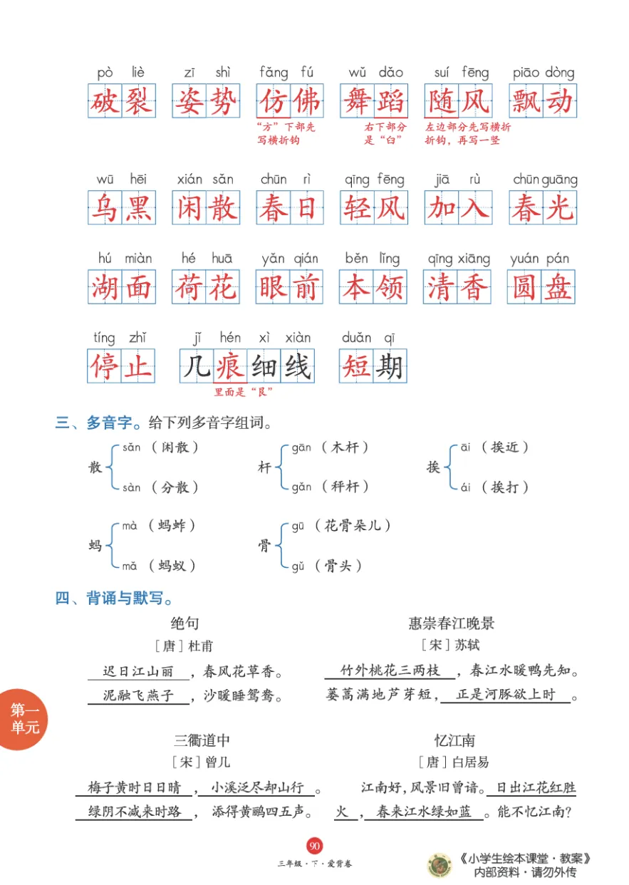 【必背古诗词】部编语文三年级下册