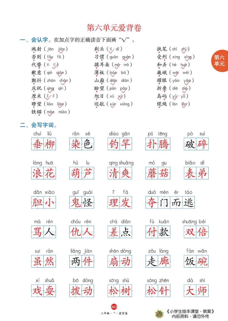 更多资料复习2025春部编语文三年级下册全套课件教案三年级下册精选资料整理【课文朗读】部编语文三年级下册【微课学习】部编语文三年级下册【必背古诗词】部编语文三年级下册三年级下册《必背内容》古诗+课文+日积月累三年级语文下册《知识记背要点》三年级下册语文每课《练重点》三年级下册每日晨读晚背三年级下册《一类字生字便条》