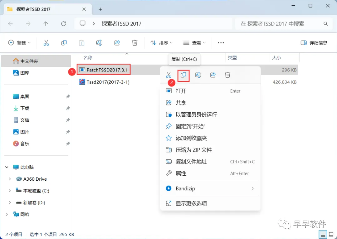 11、回到探索者TSSD 2017文件夹,找到【PatchTSSD2017.3】文件,再右键点击【复制按钮】
