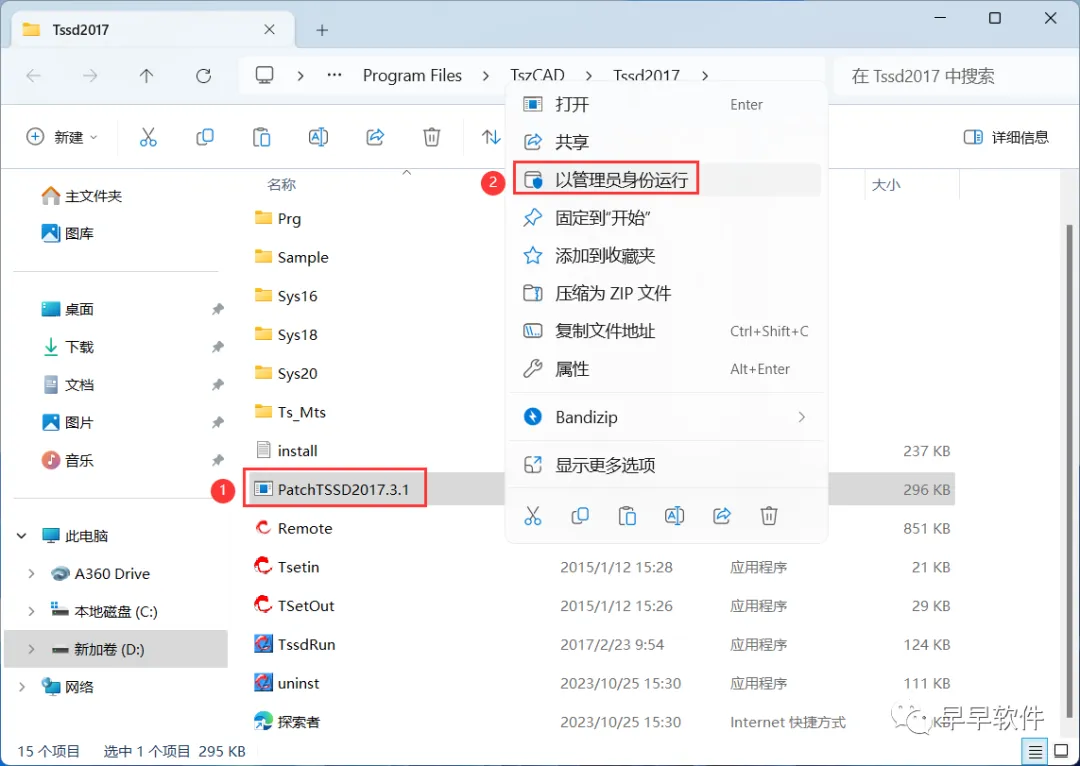 14、找到粘贴的【PatchTSSD2017.3】文件,再右键选择【以管理员身份运行】它
