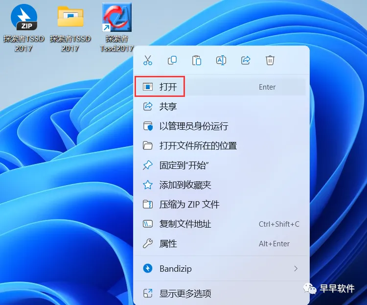 16、回到桌面,右键桌面上的【探索者TSSD 2017软件图标】,点击【打开】