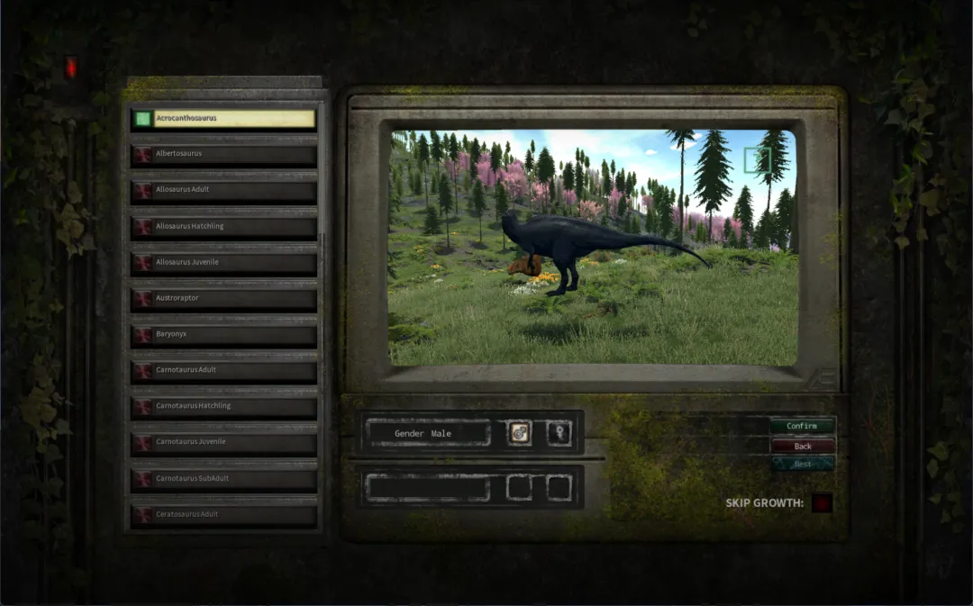 一切准备就绪,就可以进入游戏服务器,选择想要玩的恐龙,开始游戏