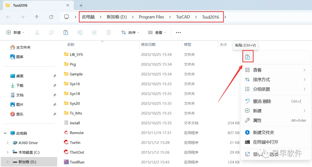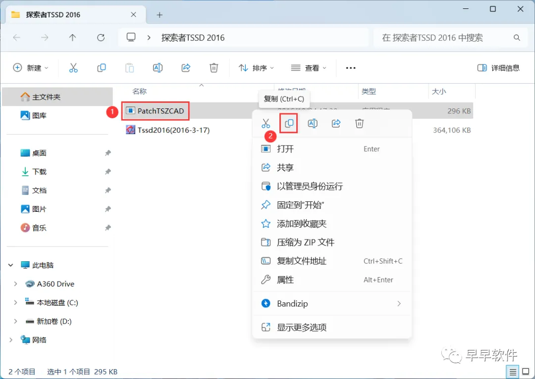 11、回到探索者TSSD 2016文件夹,找到【PatchTSZCAD】文件,再右键点击【复制按钮】