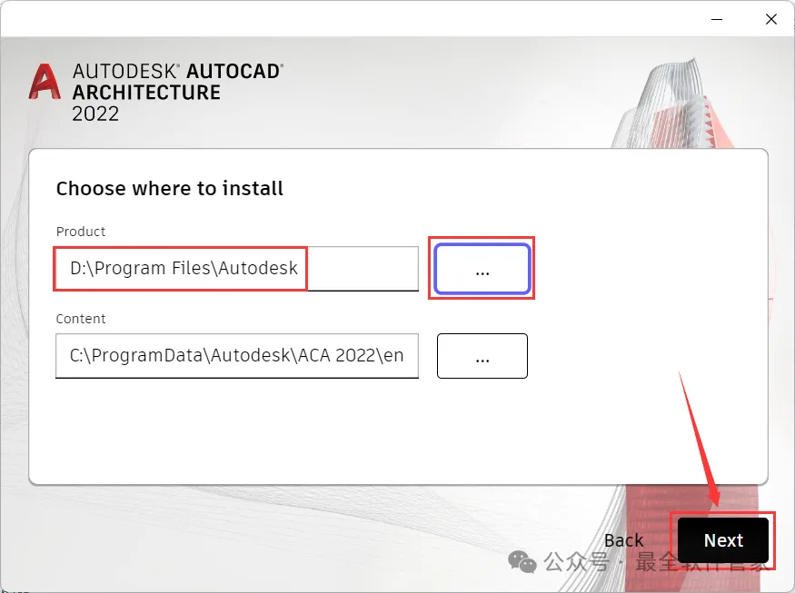 [不限速下载]:免费获取百度网盘不限速下载工具。公众号内回复:不限速[注意事项]:安装前请关闭网络、杀毒软件和防火墙,否则易安装失败。公众号内回复:1[解压软件]:小编用的解压软件是Bandizip,获取Bandizip软件安装包。公众号内回复:21、下载AutoCAD建筑版 2022软件安装包到电脑上,右键选择【解压到AutoCAD建筑版 2022\】3、找到【CAD_Architecture_2022】应用程序,右键选择【以管理员身份运行】它5、语言选择【简体中文】,勾选【我同意】,再点击【Next】6、软件默认安装在C盘,可自定义更改软件安装位置,这里小编选择安装在D盘;点击【Next】 10、回到AutoCAD建筑版 2022文件夹,找到【Crack】文件夹,右键【打开】它 11、找到【AutoCAD2022-2021Patch】程序,再右键点击【复制按钮】12、回到桌面,右键桌面上的【AutoCAD Architecture 2022软件图标】,点击【打开文件所在的位置】 14、找到粘贴的【AutoCAD2022-2021Patch】程序,再右键选择【以管理员身份运行】它 17、回到桌面,右键桌面上的【AutoCAD Architecture 2022软件图标】,点击【打开】20、以上就是AutoCAD建筑版 2022软件安装的全过程,要是对你有帮助的话,请为小编点个赞! 免责声明:软件资源均来源于网络,仅供用户交流学习与研究使用,版权归属原版权方所有,版权争议与本公众号无关,用户本人下载后不能用作商业或非法用途,否则后果均由用户承担责任;如果您访问和下载此文件,表示您同意只将此软件用于参考、学习而非其他用途,否则一切后果请您自行承担,请于下载后24小时内删除,不允许用于商业用途,否则法律问题自行承担。如果您喜欢该软件,请支持正版软件,购买注册,得到更好的正版服务。