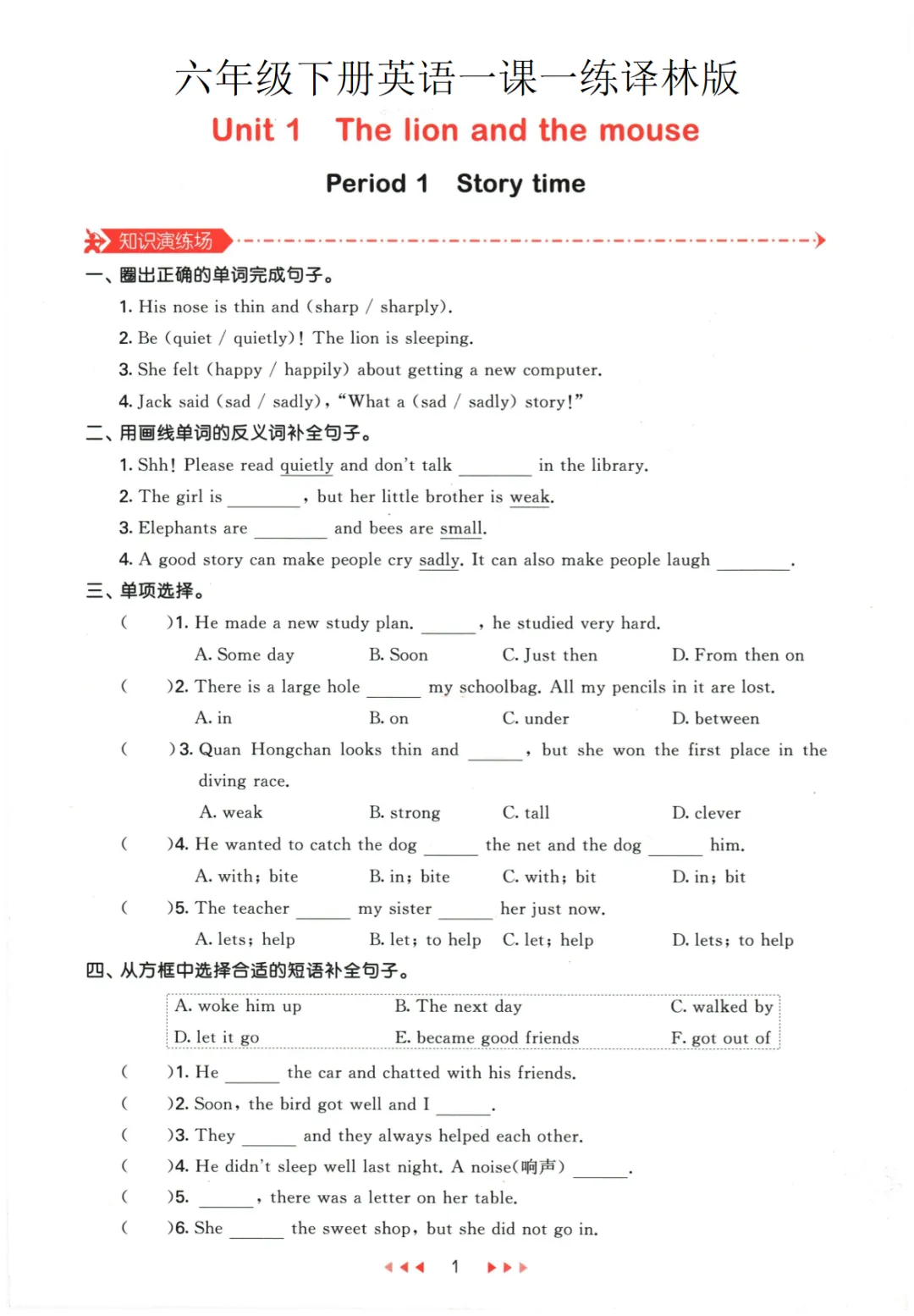 【免费下载】六年级(下)英语一课一练《译林版》_1,PDF电子版,共150页,可打印