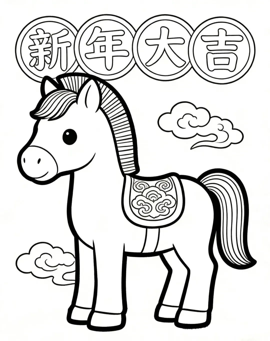1.本容分享马年儿童涂色填色模板