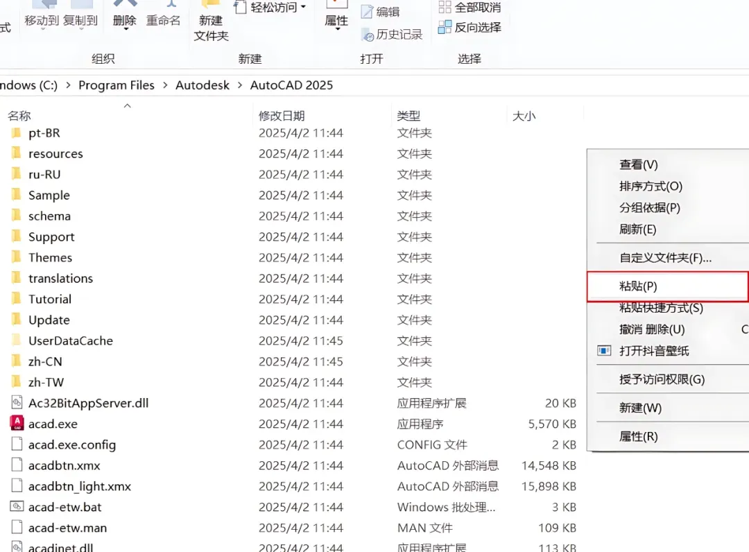 1.打开下载好的CAD2025安装包,鼠标右击压缩包,选择【解压到当前文件夹】。