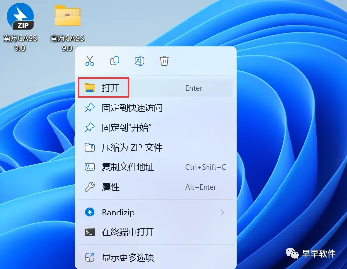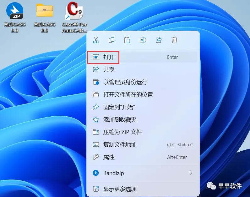 16、回到桌面,右键桌面上的【CASS11 For AutoCAD 2004软件图标】,点击【打开】