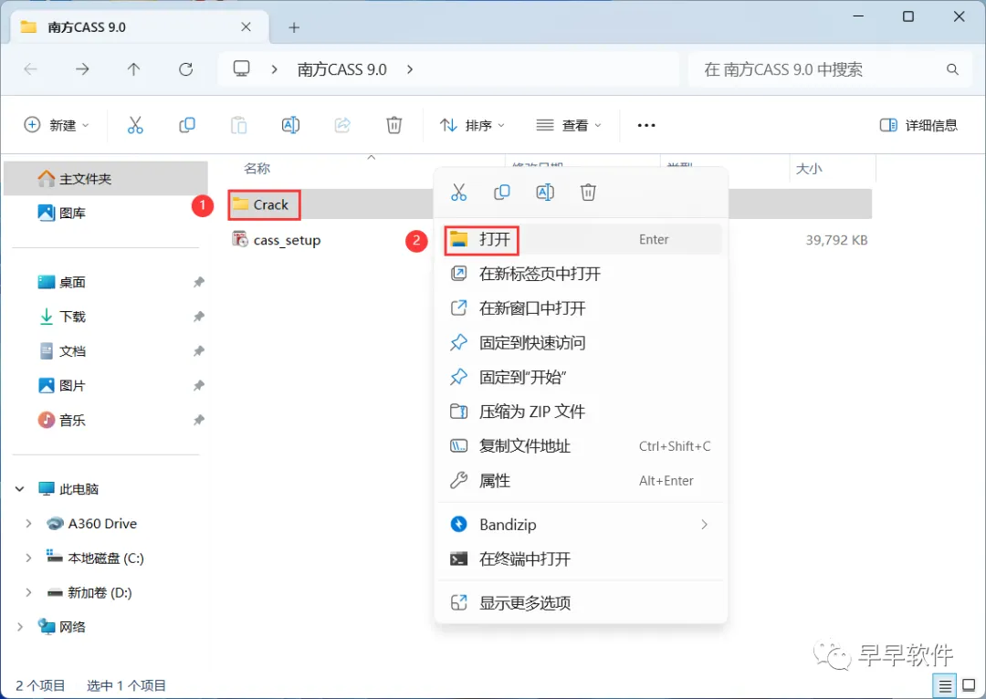 12、回到南方CASS 9.0文件夹,找到【Crack】文件夹,右键【打开】它