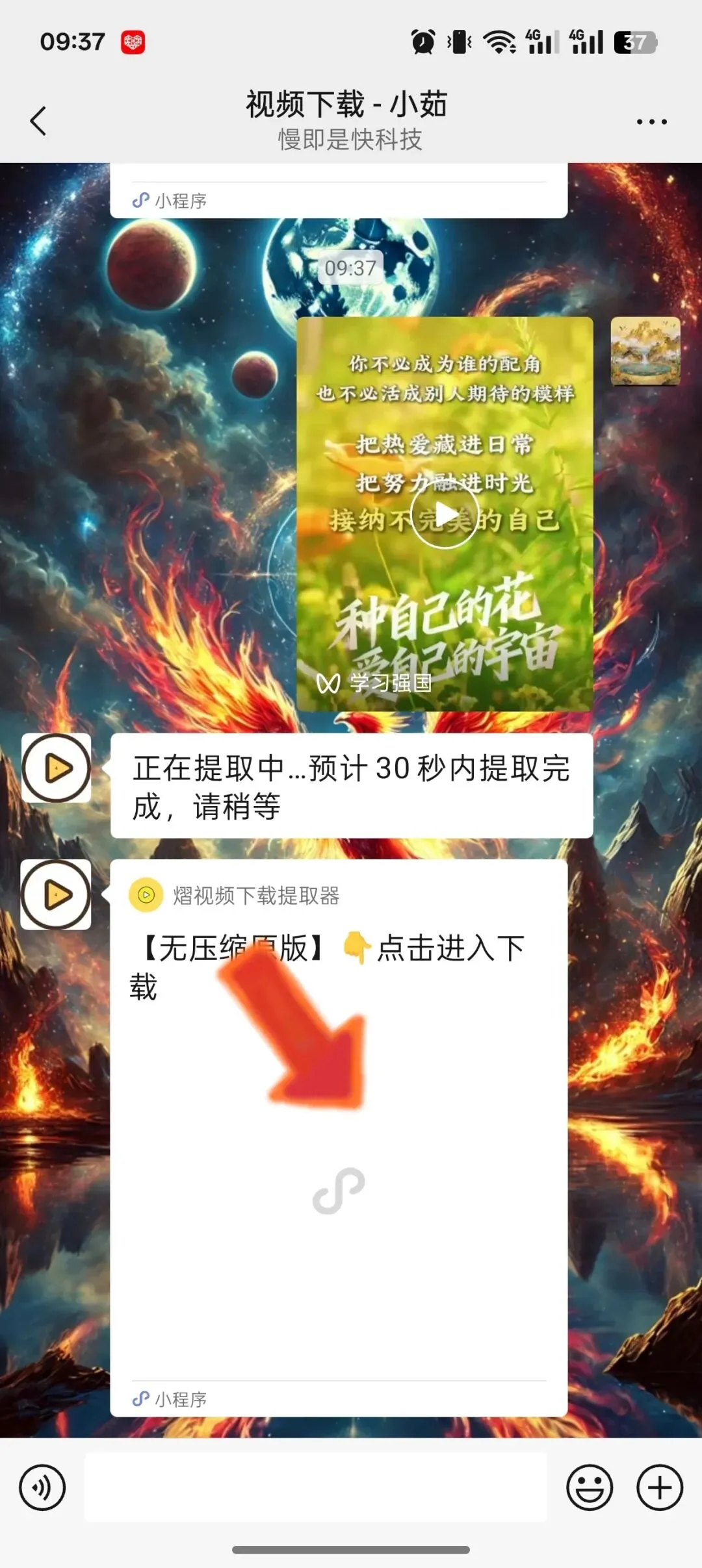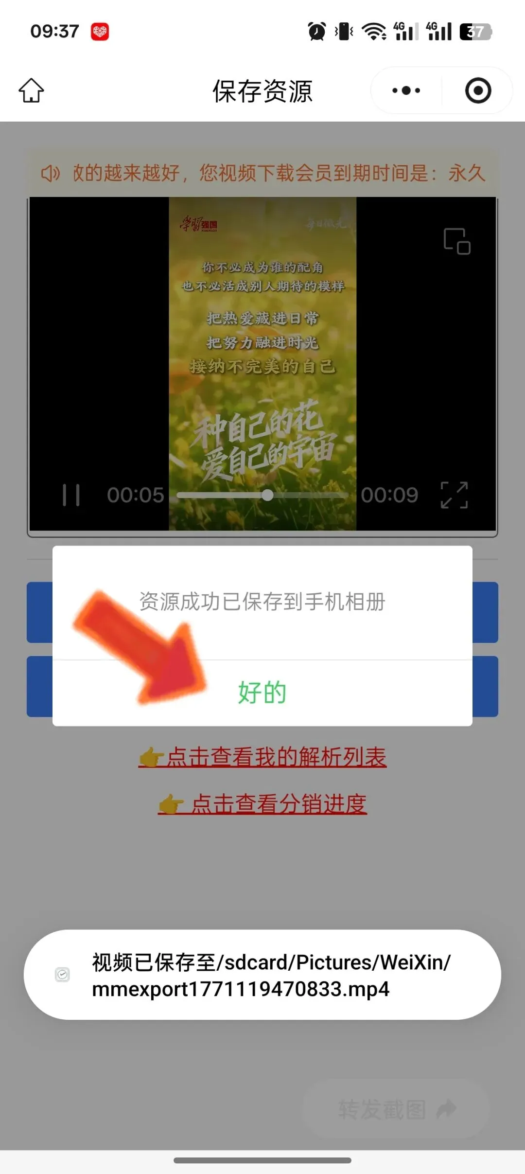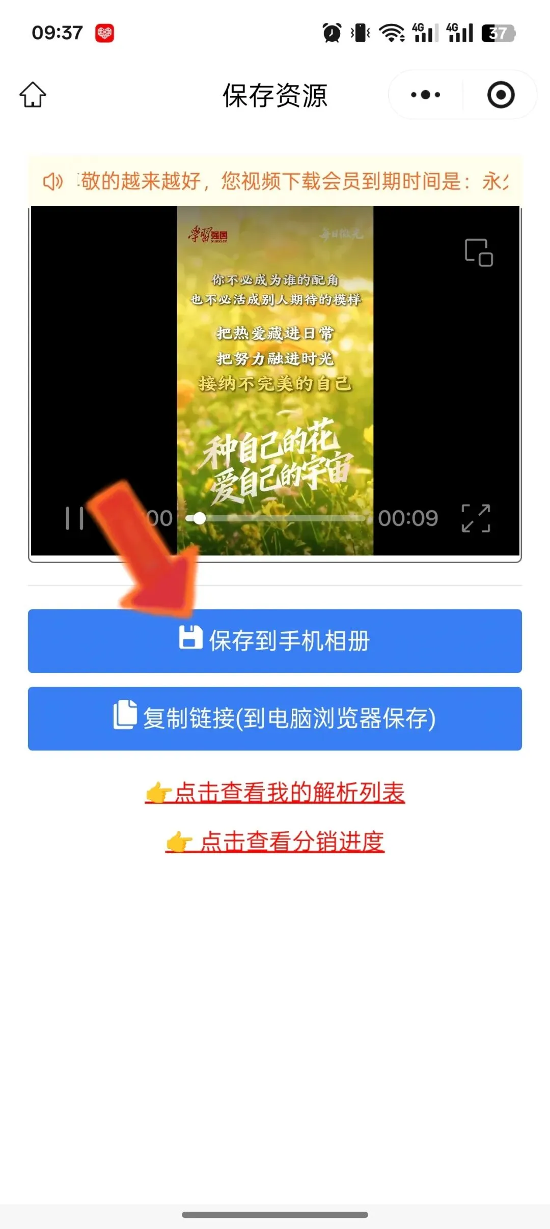 4一键下载.:点击进入小程序,即可一键下载视频到手机相册。