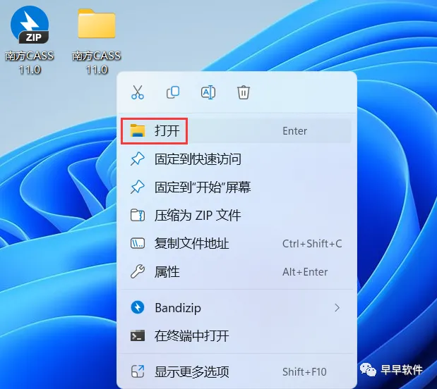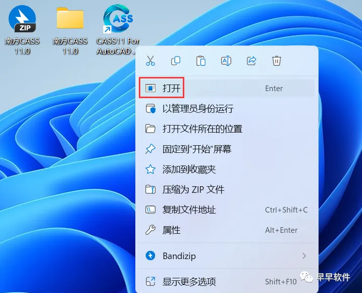 23、右键桌面上的【CASS11 For AutoCAD 2018软件图标】,点击【打开】