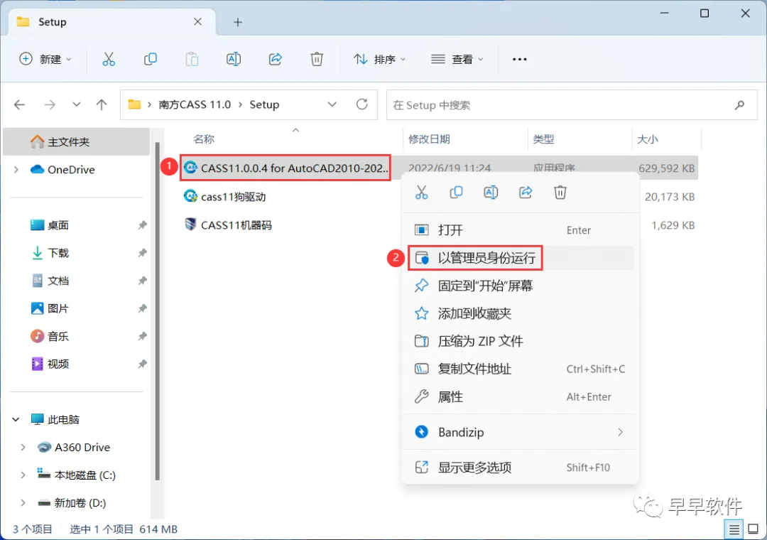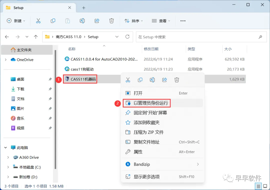 13、回到南方CASS 11.0文件夹下的Setup文件夹,找到【CASS11机器码】应用程序,右键选择【以管理员身份运行】它