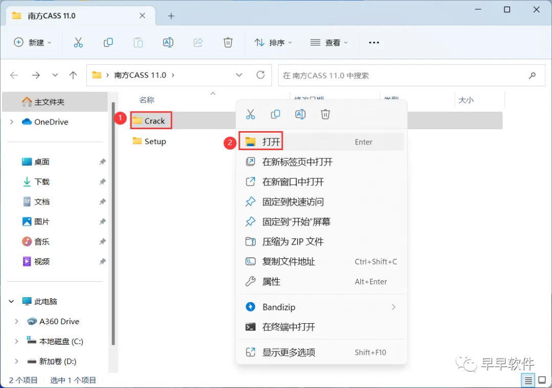 15、回到南方CASS 11.0文件夹,找到【Crack】文件夹,右键【打开】它