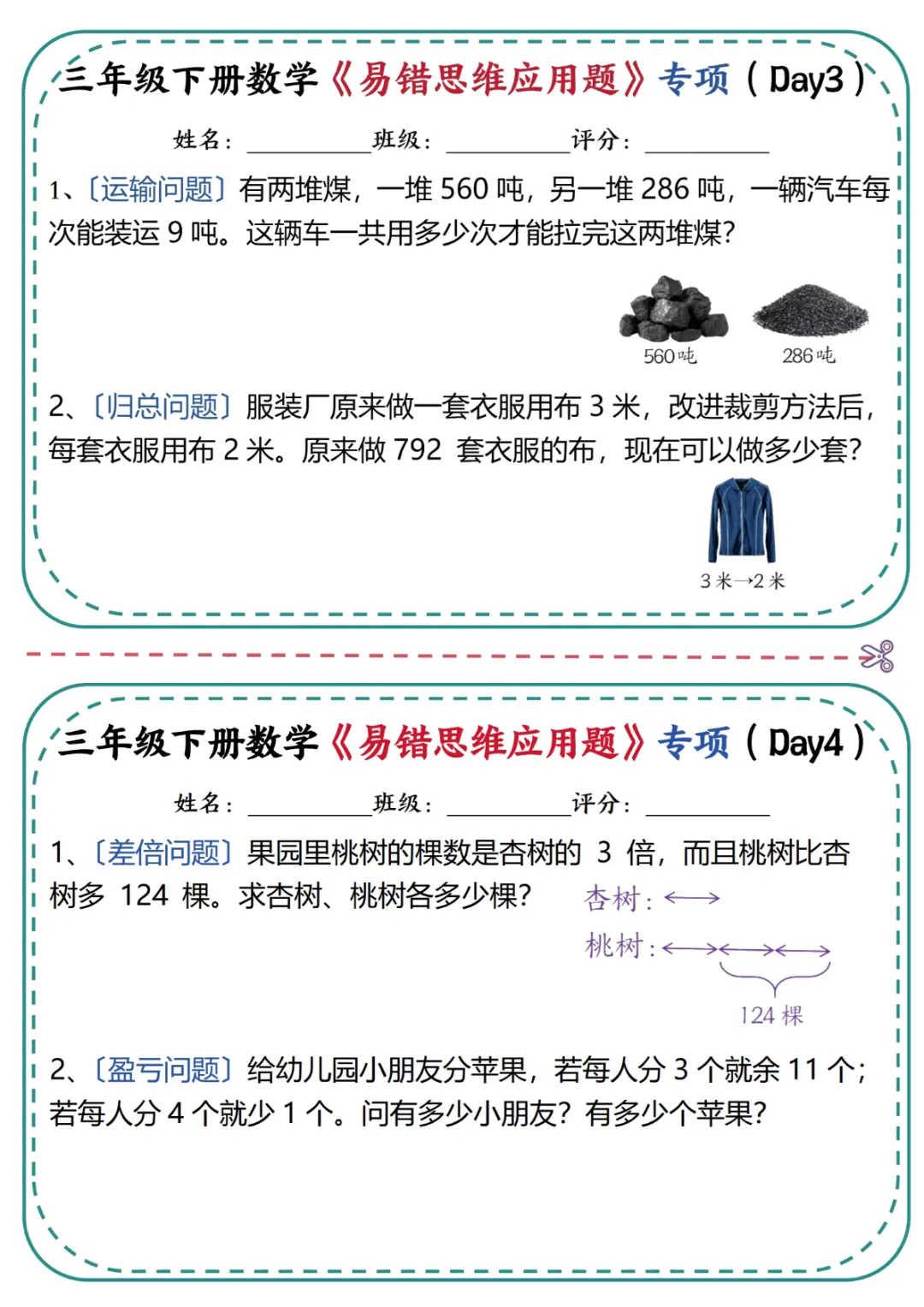 【免费下载】三年级(下)数学 《易错思维应用题》专项练习_1,PDF电子版,共24页,可打印