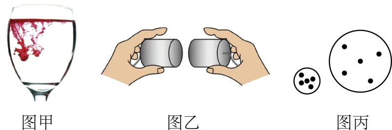 (2)图乙:将两个表面光滑的铅块相互紧压后,很难被拉开,说明分子间存在___________。