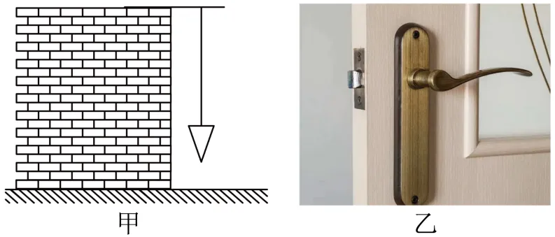 14. 在地球上的物体都会受到重力的作用,重力的施力物体是______;如图甲所示,建筑工人利用重垂线可以判断砌好的墙是否符合标准,这是利用了重力的方向总是______的知识。如图乙所示,门把手一般装在距离门轴较远的位置,便于打开门,这是说明力的______会影响力的作用效果。