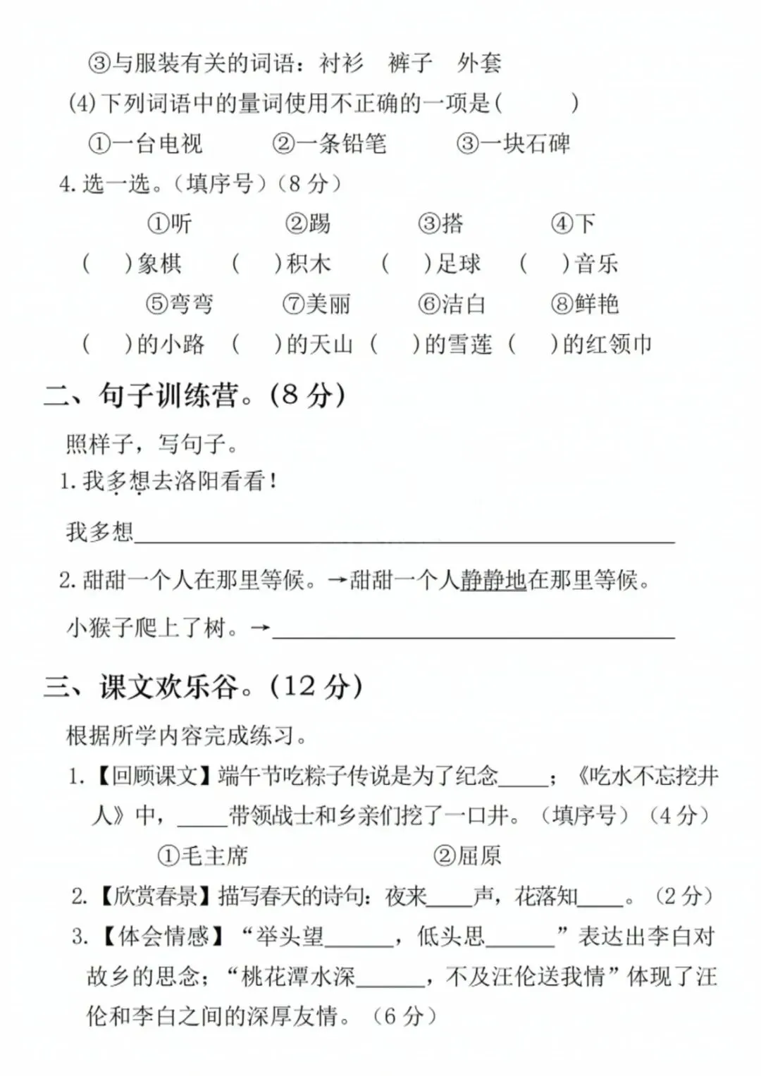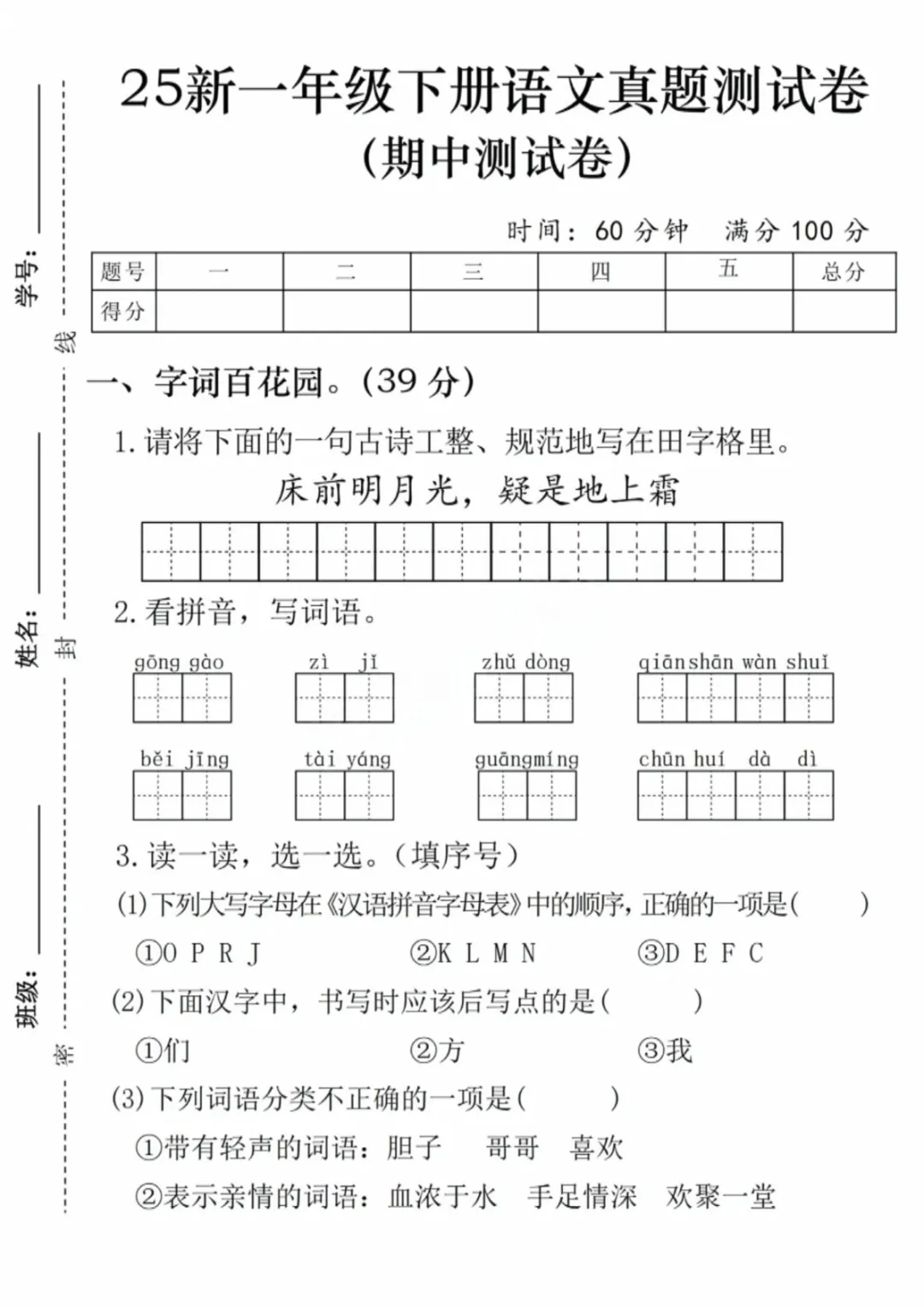 一年级(下)语文 期中名校真题测试卷2