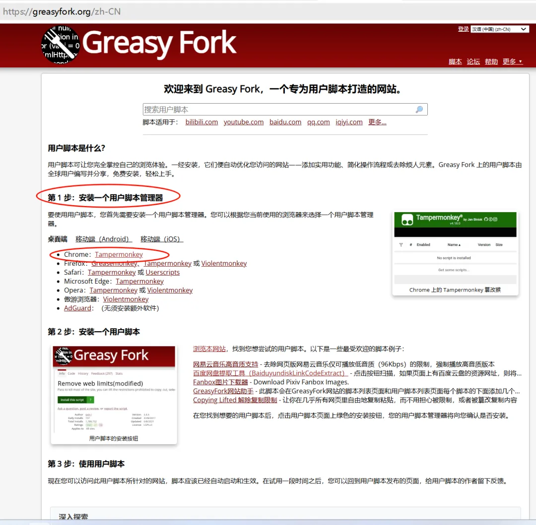 第一步:给浏览器安装“篡改猴 (Tampermonkey)”插件