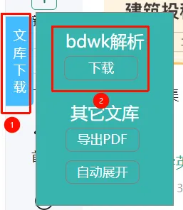 依次点击下图的①“文库下载”,会出现右边的②“下载”按钮,点击②“下载”按钮,