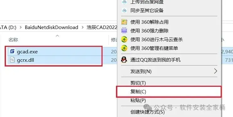 1.打开下载的浩辰CAD软件安装包,鼠标右击压缩包选择【解压到当前文件夹】。