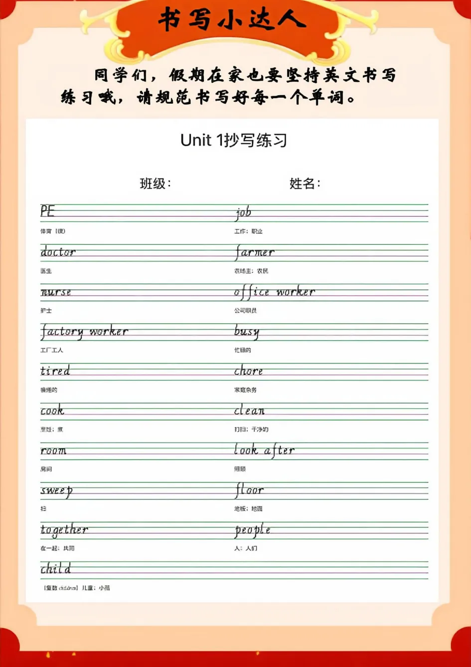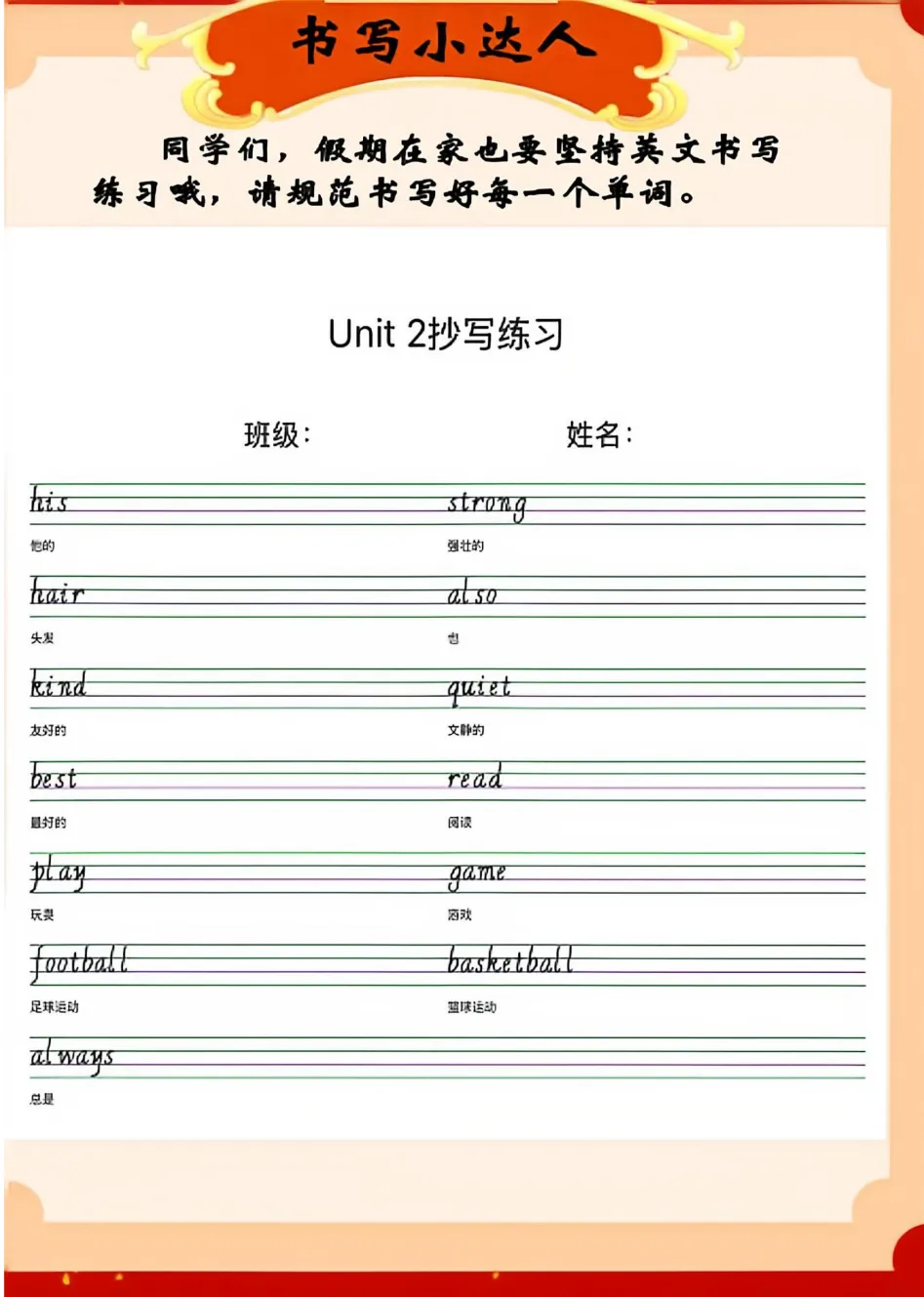 小学英语《马年寒假特色作业》