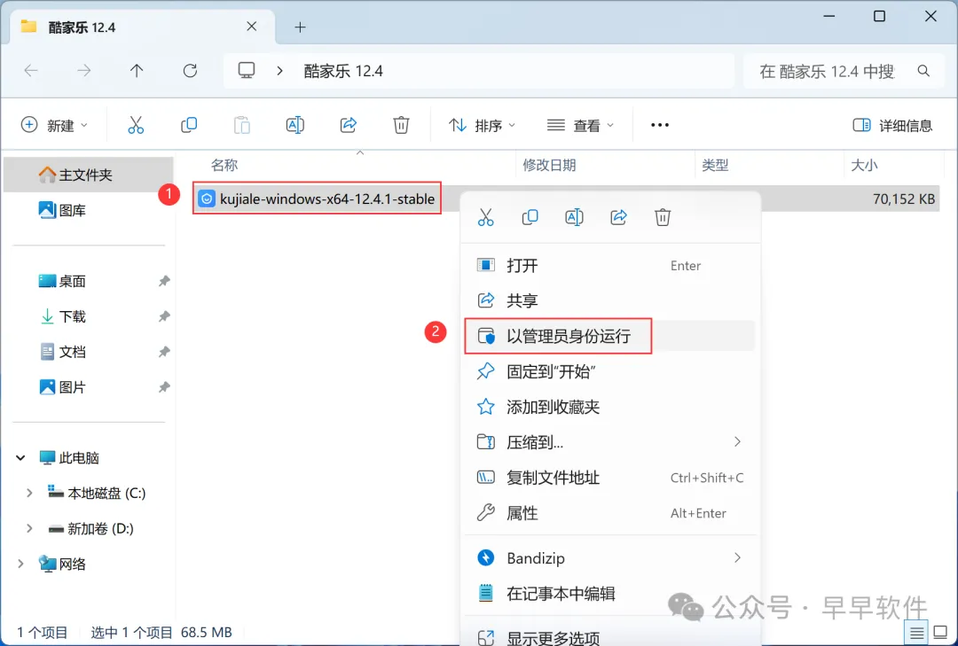 3、找到【kujiale-win64-12.4.1-stable】应用程序,右键选择【以管理员身份运行】它
