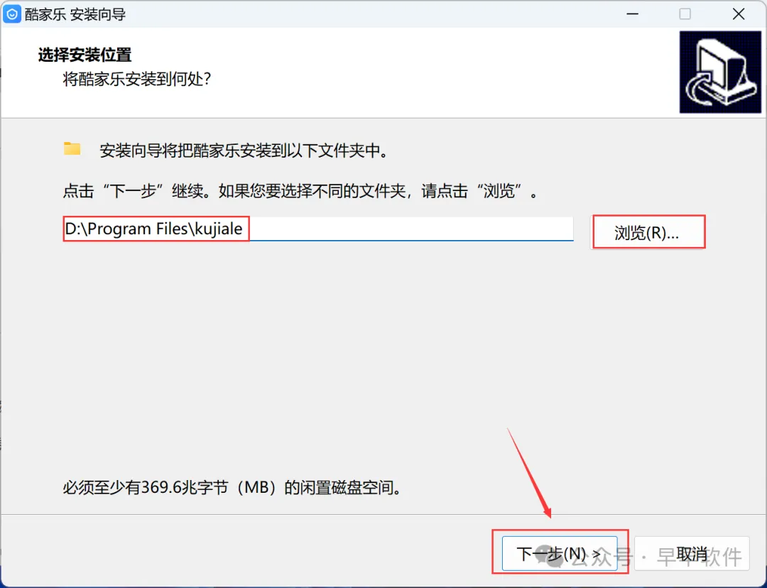4、软件默认安装在C盘,可自定义更改软件安装位置,这里小编选择安装在D盘;点击【下一步】