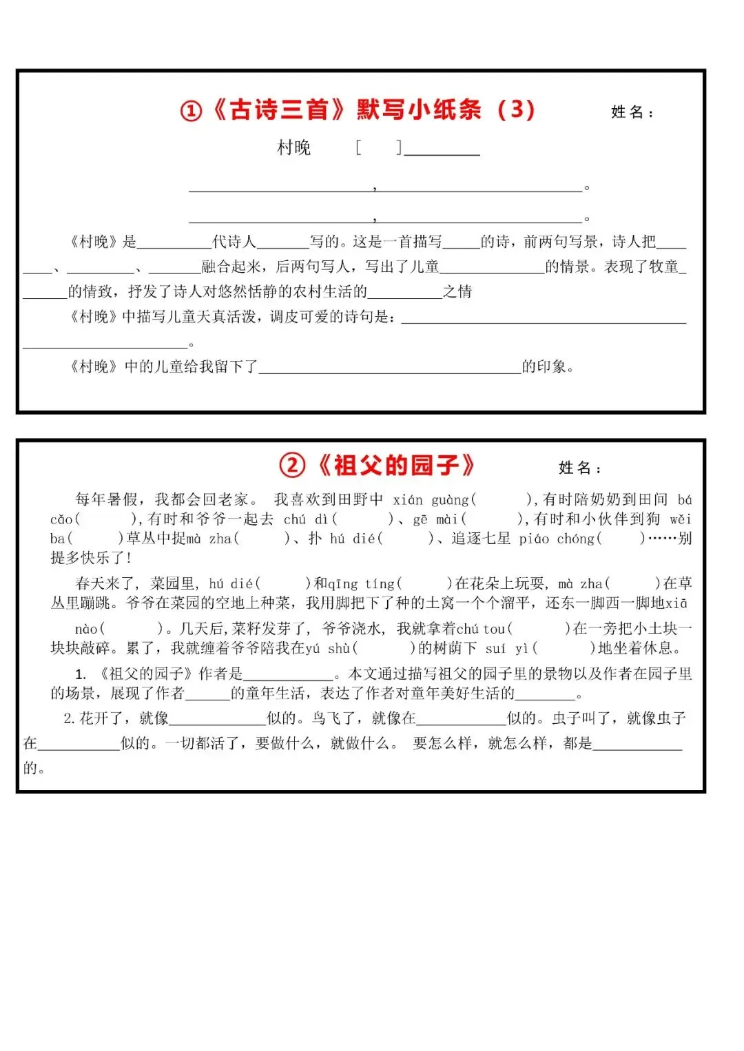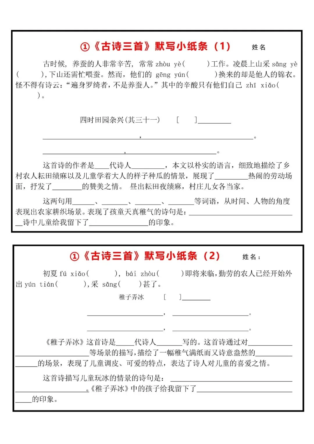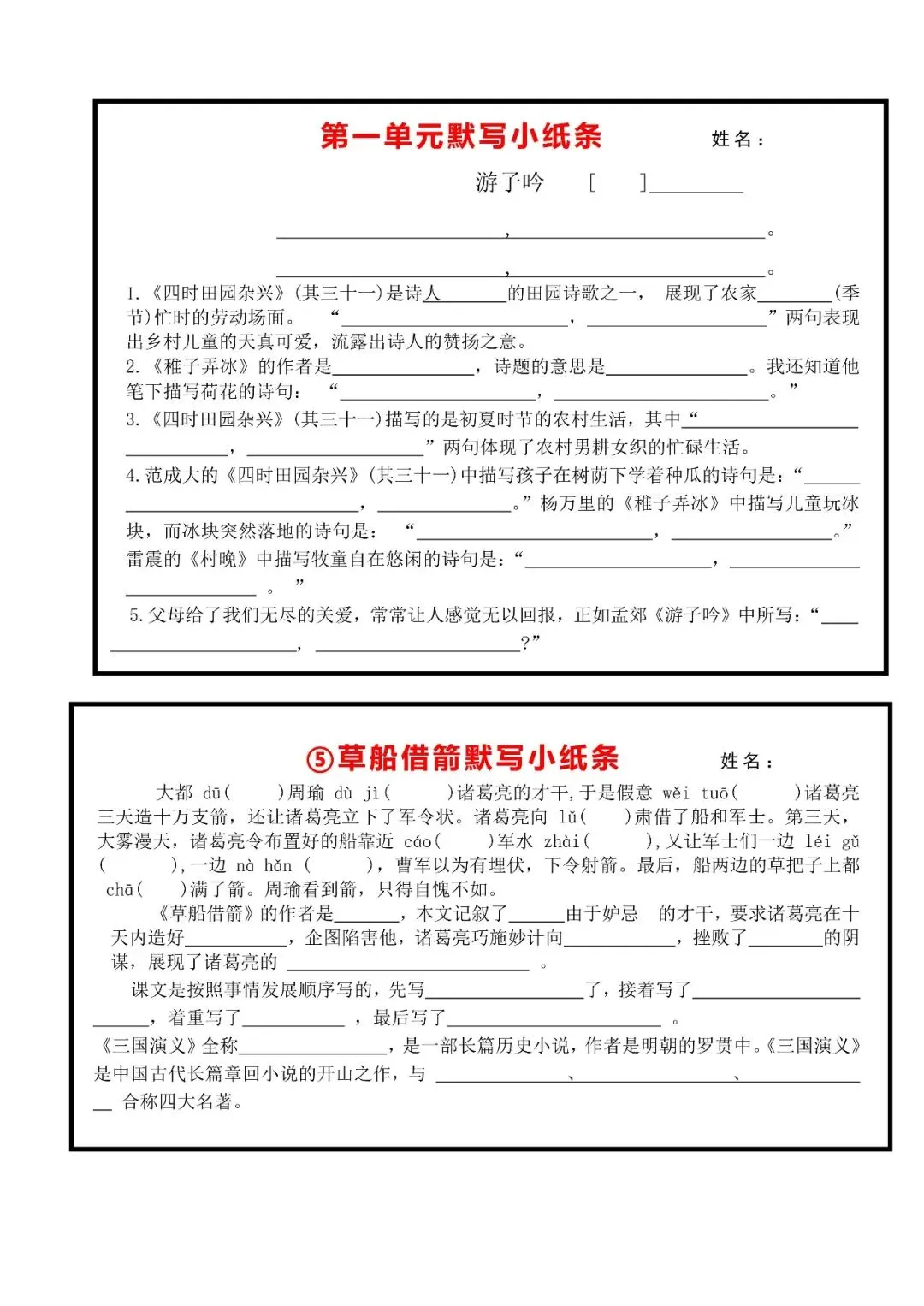 《五年级(下)语文 每课默写小纸条》
