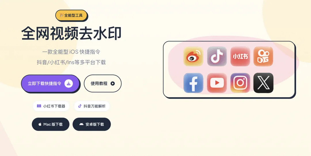 分享一个好消息:我制作并持续运营多年的 iOS 快捷指令全网视频去水印/小红书下载器/抖音万能解析,春节期间每天免费下载从 10 次提升到 50 次。
