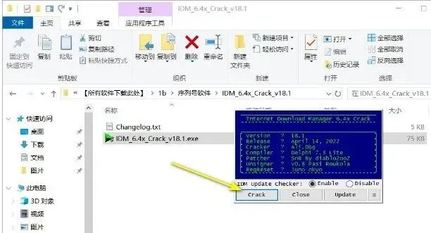 5、点击 crack 如果没有看是不是被杀毒软件删除了,如果是微软防火墙 删除的可以在记录里面还原